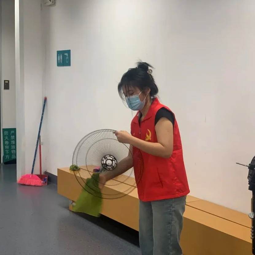 身着红马甲,手拿绿抹布,利用课余之时,我和同学们一起参与了图书馆风扇清洗的志愿活动。在老师的指导下,同学们有序完成拆洗风扇的工作。理论的价值在于指导实践,学习的目的在于运用。将来,我们广大党员也要坚持深入学习贯彻习近平新时代中国特色社会主义思想,积极参与更多的实践活动,做到以学促干,以干践学。